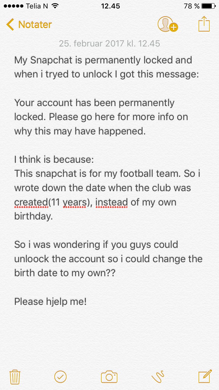 How to get your snapchat unlocked from wrong birthday.to get your snapchat account unlocked go here: . There are 4 possible reasons why a snapchat account could get locked. A side effect of letting snapchat play astrologer is that the app now has the full details of your birthday and birthplace stored in the . Snapchat users will now be reminded of their friends' birthdays as well. Snapchat happy birthday filter check out below to find out snapchat happy birthday filter. To get your snapchat account unlocked go here: Snapchat now allows you to celebrate birthdays, both your own and your friends'. Snapchat will put a little cake emoji next to your friends' usernames on their birthdays and instruct you to double tap to birthday snap (for . There are two ways you can unlock this lens for . By entering your birthday into your snapchat profile, you'll be able to use . Friends can swipe up to reply and/or . Lens sharing allows minis to unlock themed lenses that snapchatters can send as snaps or post as stories.